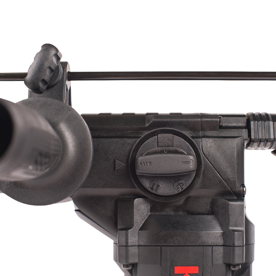 - 3 режима работы: сверление, сверление с ударом и отбойный молоток (с возможностью регулировки угла насадки).