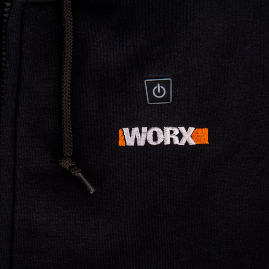 Толстовка с подогревом WORX WA4660 отлично подходит для наружных работ во время холодов. Для работы встроенного устройства подогрева необходим источник питания аккумулятор WORX WA4009 или обычный пауэрбанк.