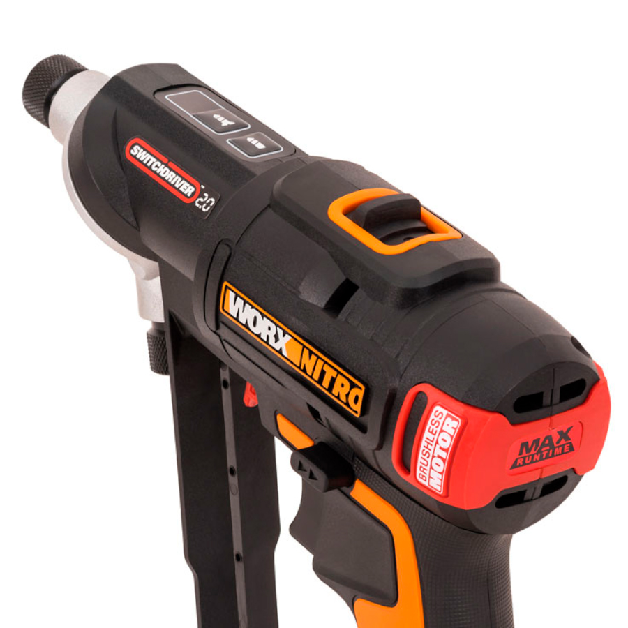 WORX WX177 – Новый уникальный инструмент, совмещающий в себе функции дрели и шуруповерта. Компактная и легкая дрель оснащена технологией WORX Switchdriver 2.0, которая позволяет подготовить инструмент к сверлению или работе с крепежом простым поворотом головки.