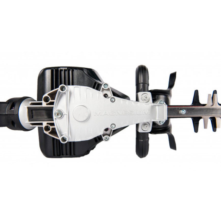 Кусторез аккумуляторный Greenworks из линейки техники 80 вольт (модель GD80HT) - это отличная замена электро или бензокусторезу, которая с легкостью справится с подрезкой деревьев, кустарника или живой изгороди. Модель оснащена надежным бесщёточным двигателем DigiPro, сопоставимым по мощности с бензиновыми аналогами, при этом он абсолютно экологичен, имеет высокий крутящий момент, низкий уровень шума и вибраций, а так же прост в эксплуатации. Рукоятка кустореза с функцией поворота на 180°. Лезвие снабжено реверсивным ходом, длина лезвия 61 см. с алмазной заточкой, а шаг среза равен 33 мм. Данная модель обладает легким весом (всего 5,5 кг.), низким уровнем шума и вибрации, а также эргономичным дизайном рукоятки. Долгое автономное время работы (до 80 минут от 4 А/ч батареи) и отсутствие необходимости использовать бензин и масло, переносить за собой провод - вот ключевые преимущества этого кустореза. Устройство оснащено предохранителем от случайного включения и защитным щитком от пореза рук. Для долговечной работы двигатель имеет защиту от перегрузки.