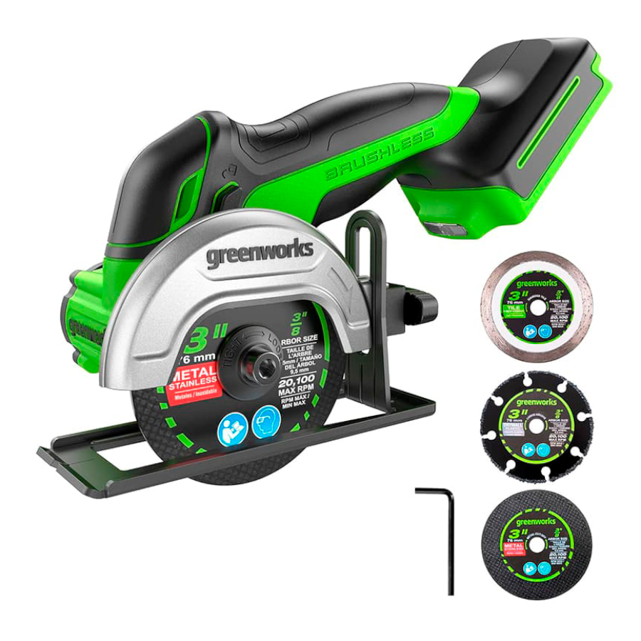 - Greenworks Intelligent Power™: умное управление, защита от перегрузки, перегрева, отдачи и повторного запуска.