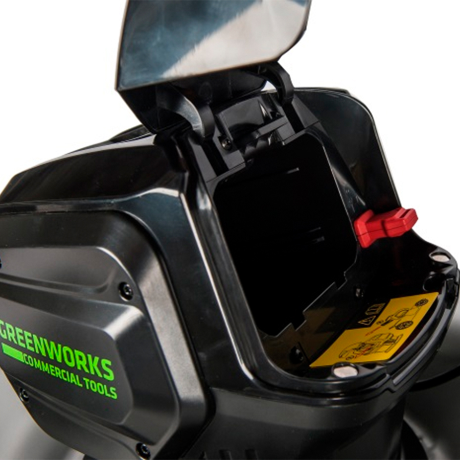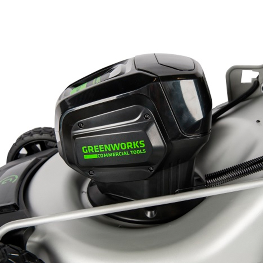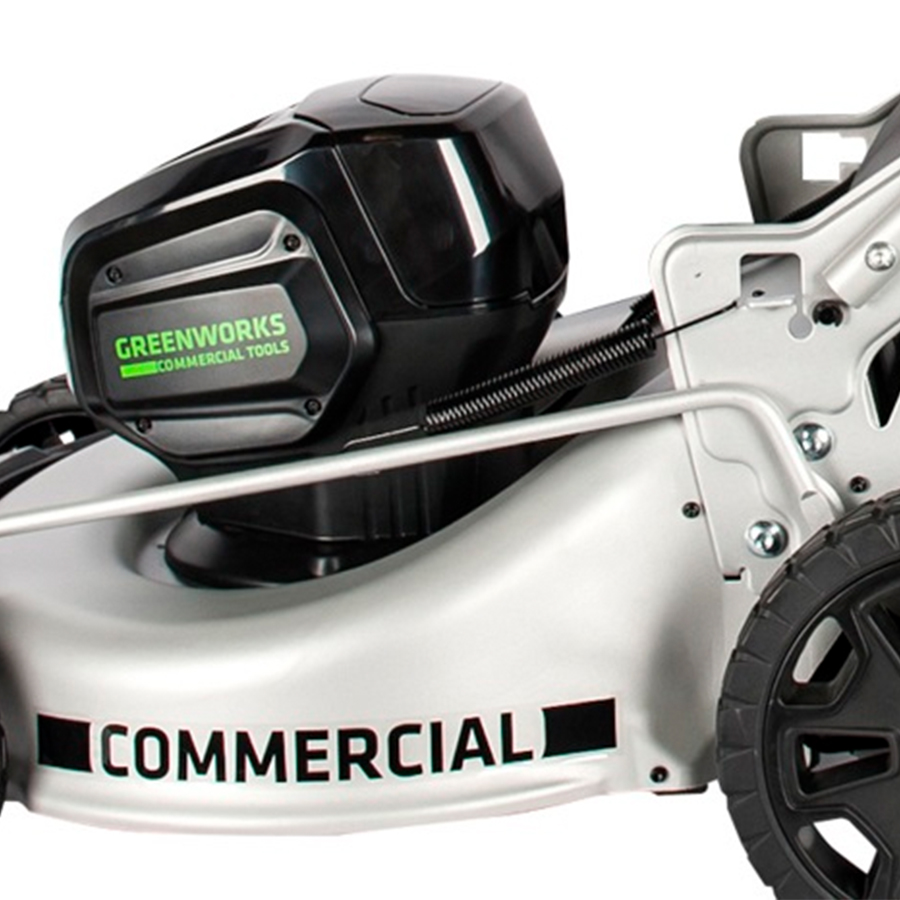 Газонокосилка работает от аккумуляторной батареи 82V Commercial, которую можно использовать другими с устройствами линейки 82V.