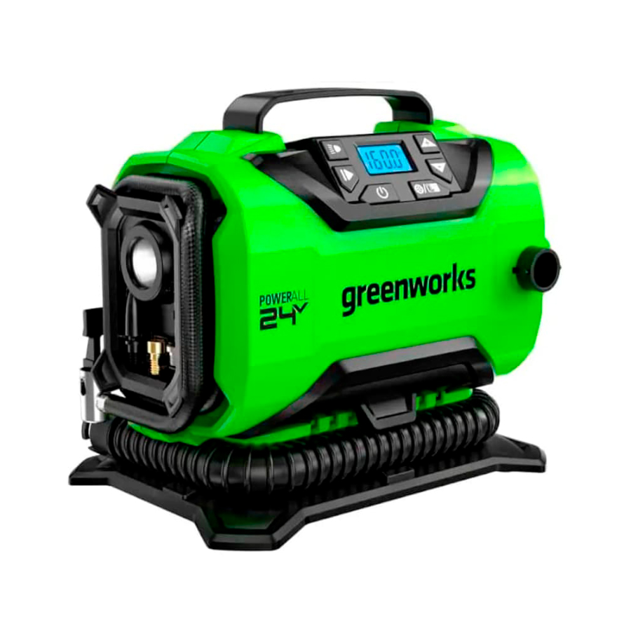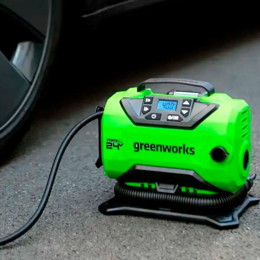 - Компрессор автомобильный аккумуляторный Greenworks ACG301 (3400807), 24V / 12V;