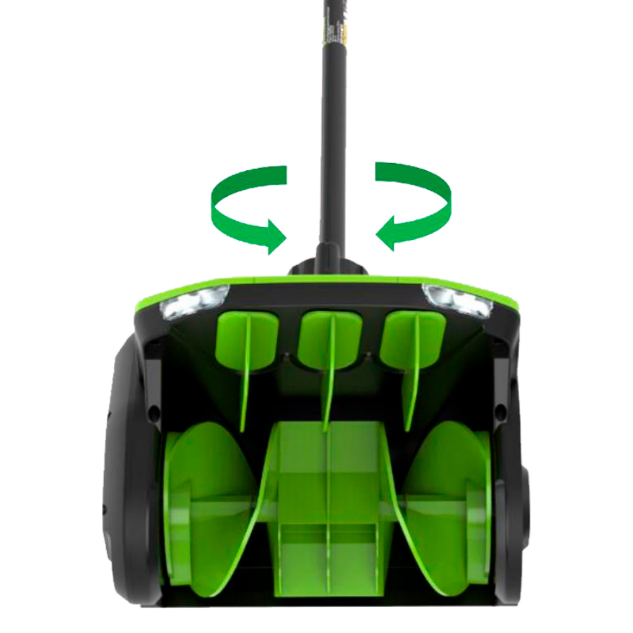 Снегоуборочная лопата Greenworks GD60SS2 60V 2603207 (30 см) с регулируемым направлением выброса бесщеточная аккумуляторная — лопата из серии 60V для облегчения уборки территорий от снега. Имеет ширину шнека 30 см. Оснащена бесщеточным двигателем и регулировкой выброса снега. Регулировка направления выброса позволяет направить снежный поток в нужное место, минуя препятствия и не повреждая окружающие предметы. Регулировка осуществляется вручную на +/- 30 градусов, обеспечивая точный контроль. Выбирайте между двумя режимами работы (1500/1800 об/мин) с помощью переключателя. Две LED фары обеспечивают яркую подсветку рабочей зоны в сумерках, делая уборку комфортной даже в условиях ограниченной видимости. Дальность выброса до 7,6 метров. Удобная переставляемая по высоте рукоятка делает управление инструментом комфортным и оптимальным для любого роста. Мощный бесщеточный двигатель 1800 Вт - это надежная и эффективная работа даже при плотном снеге. Высокая производительность благодаря ширине захвата 30 см, высоте захвата 20 см. Легкий и компактный: Масса без АКБ и ЗУ 7,2 кг обеспечивает удобство хранения и транспортировки. Бесщеточный двигатель DigiPro с внешним ротором гарантирует долговечность и высокую производительность. Greenworks GD40SS2 сводит к минимуму лишнюю работу. Благодаря регулировке направления выброса, вы можете избавиться от снега одним движением, не перебрасывая его несколько раз. Оптимальное направление выброса сокращает время уборки и позволяет быстро очистить даже длинные и узкие площадки. Регулировка направления выброса позволяет избежать повреждений автомобилей, ограждений и других предметов. Снегоуборщик оснащен передовым бесщеточным двигателем. Такой двигатель меньше подвержен износу, имеет более продолжительный срок службы и не нуждается в сложном обслуживании, при этом экологичен и отличается пониженным уровнем шума и вибрации. Модель работает от аккумуляторов 60V, совместимых с другими устройствами Greenworks 60V. Полупрофессиональная серия садовой техники и инструментов 60V отличается высокой мощностью и подойдет для решения как повседневных, так и более сложных задач.
