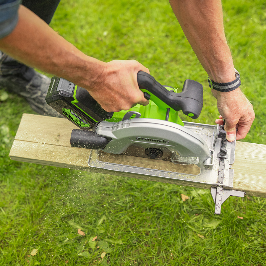 - Циркулярная пила аккумуляторная Greenworks 24V, артикул 1500907, модель GD24CS;