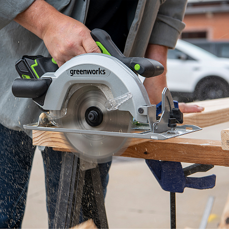 - Циркулярная пила аккумуляторная Greenworks 24V, артикул 1500907, модель GD24CS;