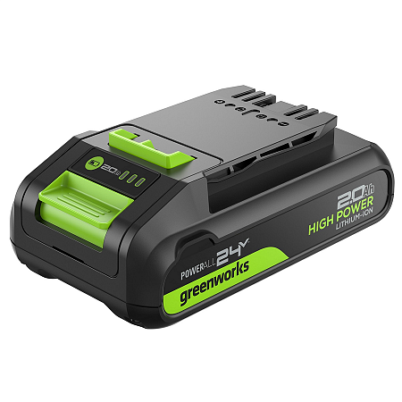 Работает от Li-Ion аккумулятора 24V, совместимого с 70 инструментами из линейки Greenworks 24V.