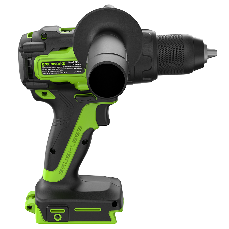 Работает от Li-Ion аккумулятора 24V, совместимого с 70 инструментами из линейки Greenworks 24V.
