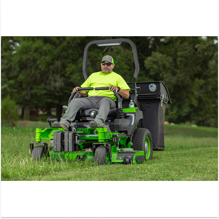 Оригинальный травосборник для аккумуляторного садового трактора Greenworks ZTC152 с нулевым радиусом поворота (арт. 7405107).