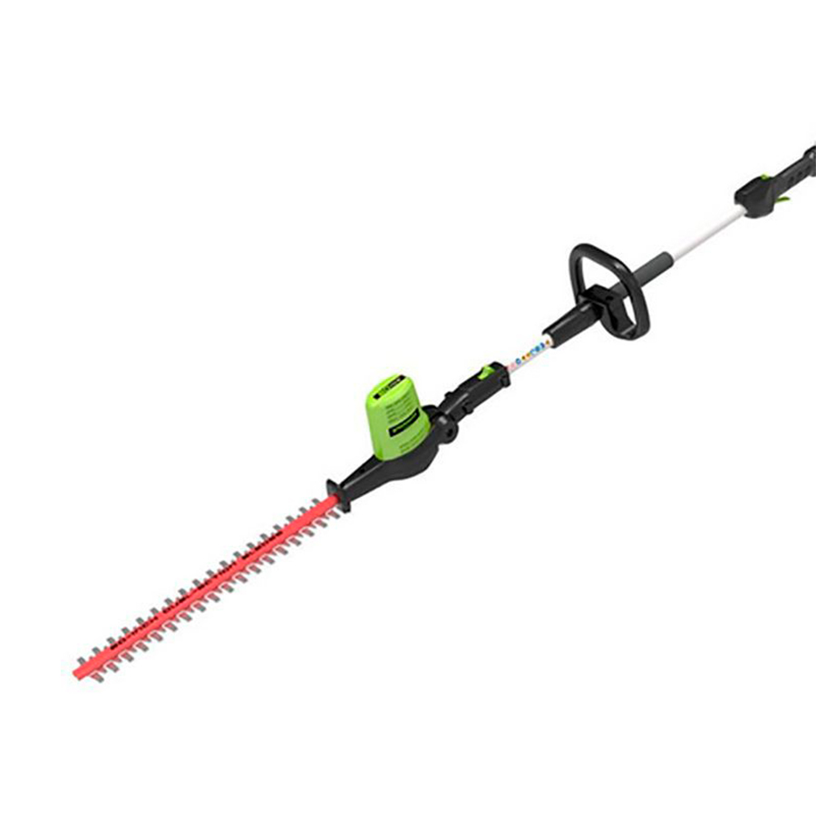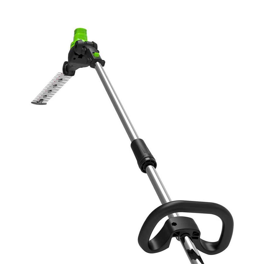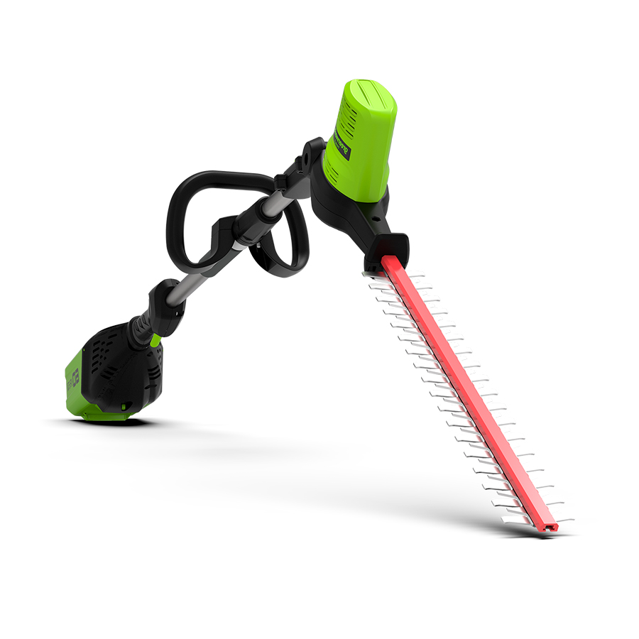 Кусторез штанговый аккумуляторный Greenworks работает от аккумуляторной батареи G-MAX 60V, которую можно использовать с другими устройствами линейки 60V (на текущий момент 15+ устройств).