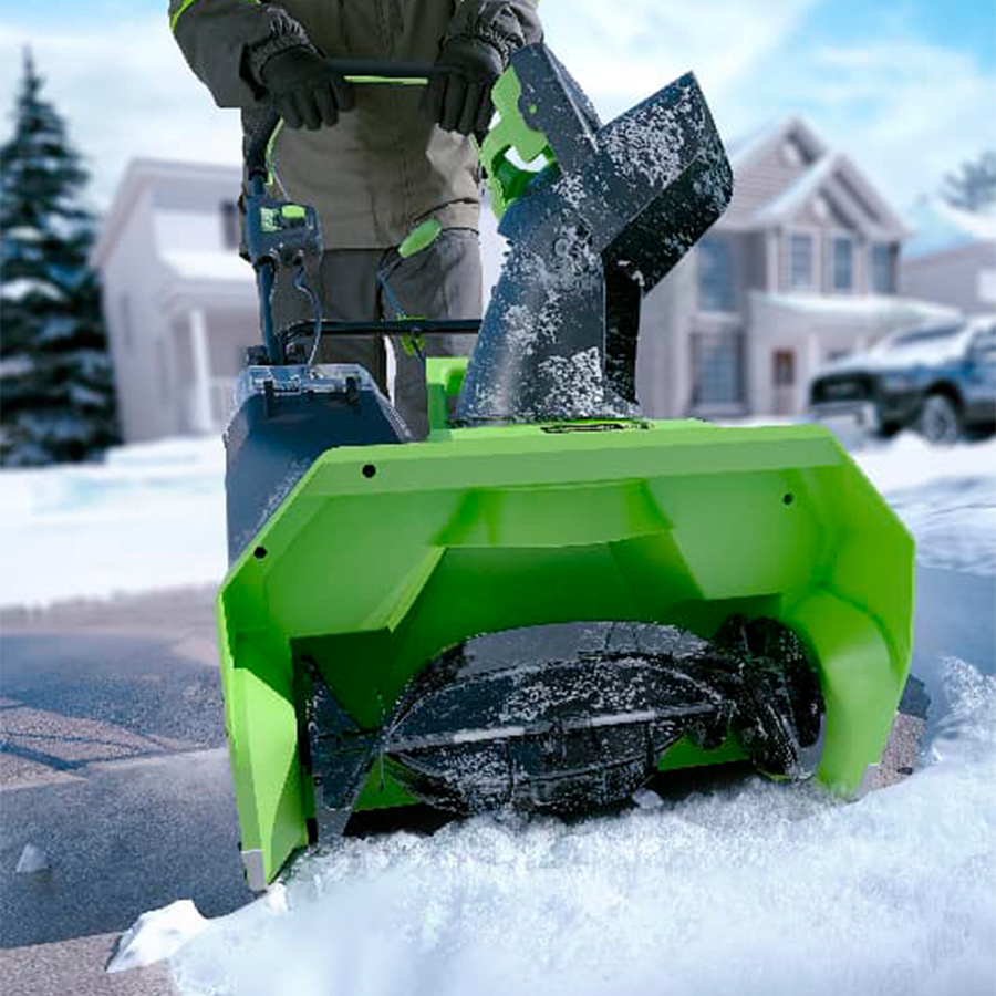 Снегоуборщик подкатной Greenworks 60V GD60STK4 с шириной сбора снега 51 см