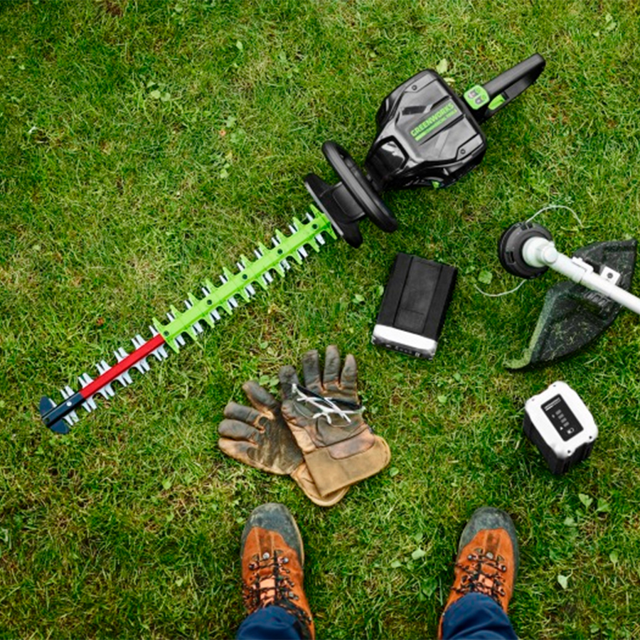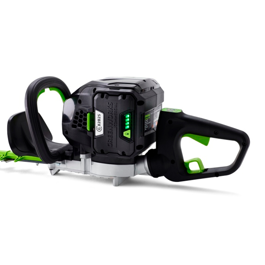 Кусторез совместим с другими устройствами из линейки 82V Commercial, так как работает от аккумулятора 82V. Нужно заметить, что аккумуляторная техника GreenWorks выгодно отличается от бензиновых или электрических аналогов: она конечно же экологична и не отравляет окружающую среду и ваше здоровье выхлопами СО2, электродвигатель имеет высокий крутящий момент, вся техника намного менее шумная, а уровень вибрации на порядок ниже (например, представьте себе, насколько безопасно стоять на неустойчивой стремянке в саду и стричь куст жимолости или сирени с вибрирующим и "пахнущим" бензиновым кусторезом). Это, конечно, простота эксплуатации, отсутствие необходимости в обслуживании. Теперь нет нужды в приготовлении взрывоопасных бензиновых смесей и их хранения в гараже и т.д. Согласитесь, это внушительные плюсы для покупки совершенно новой высокотехнологичной техники в ваш парк или садовый участок.