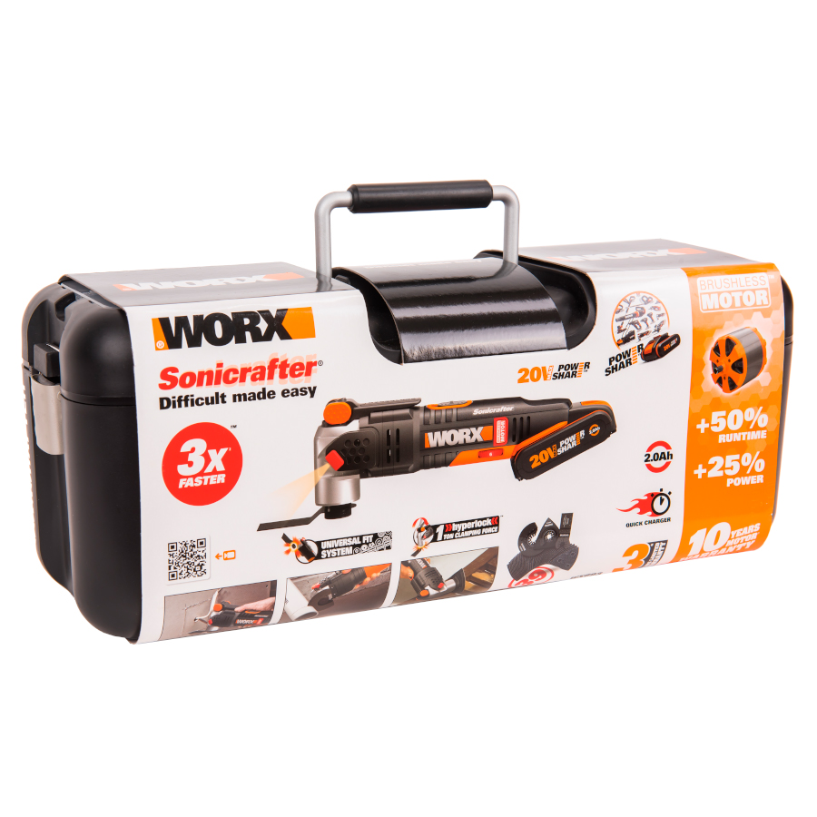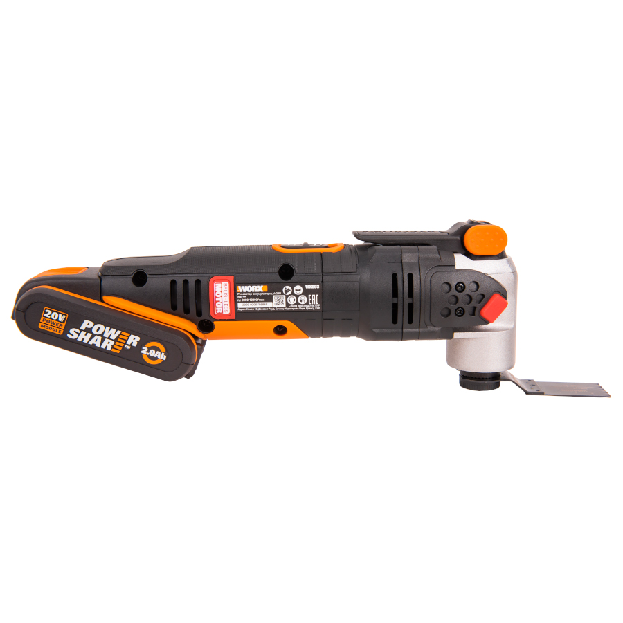 - Удобство и надежность WORX WX693 оснащен светодиодной подсветкой для удобства работы в условиях недостаточной видимости. Регулировка частоты колебаний позволяет настраивать инструмент для работы с мягкими и твердыми материалами. Реноватор имеет современный бесщеточный двигатель, который получил на 25% больше мощности и увеличил срок службы на 50% в сравнении с щеточными аналогами. Питание устройства осуществляется от универсального аккумулятора WORX Powershare, совместимого со всеми инструментами производителя в линейке вольтажа и оснащенного электронной платой защиты от перегрева.