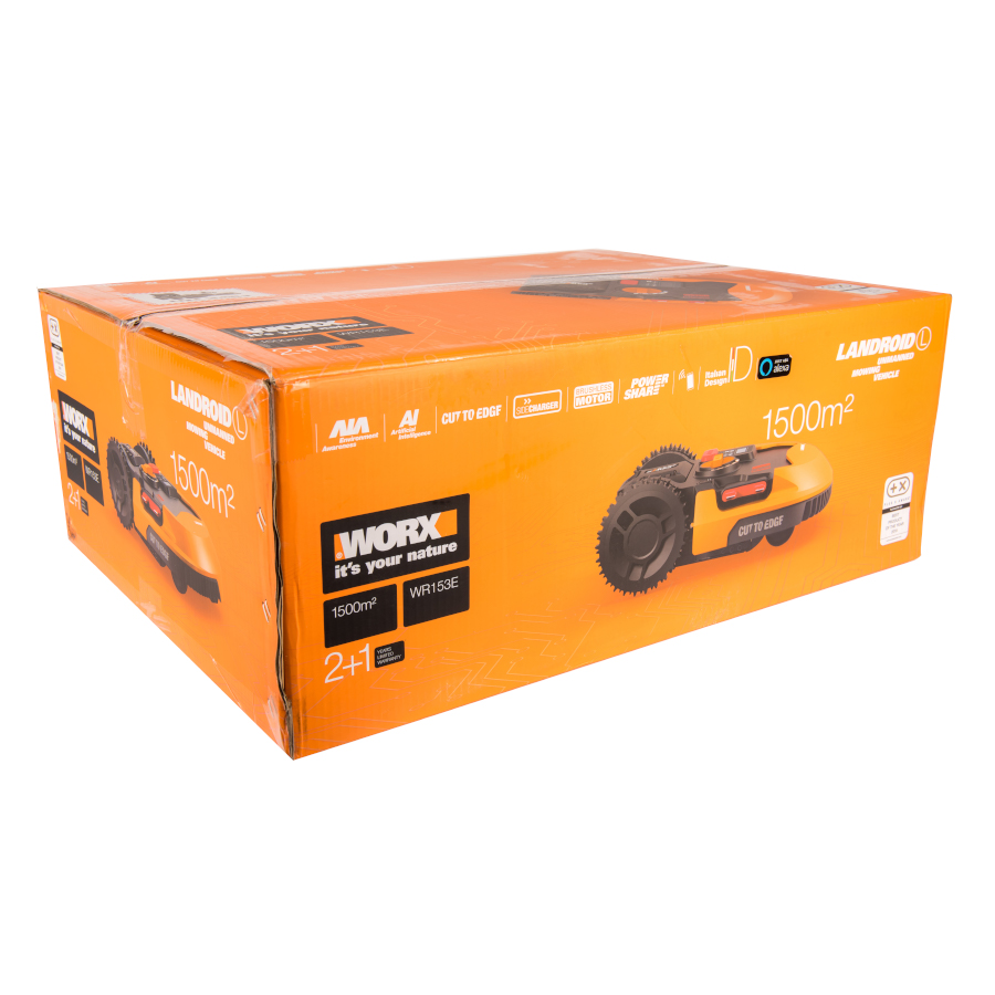 WR153E – представитель линейки самых больших роботизированных косилок Worx Landroid. Модель рассчитана на обслуживание участка площадью до 1500 м²: для того, чтобы быстро постригать такую лужайку, она дополнена интеллектуальной системой навигации и расширенной до 220 мм рабочей частью. Управлять роботом практически не нужно: достаточно включить его и задать рабочую зону. Для контроля за эффективностью скашивания и состоянием газона стоит установить на смартфон бесплатное приложение (подходит для iOS и Android). Косилка обновляет программное самостоятельно по Wi-Fi. WR153E без проблем стрижет не только ровные лужайки, но и холмы со склонами до 35%. Непосредственная рабочая часть – трехлезвийный нож – выполнен из прочной и долговечной стали. Он дополнен режущей кромкой, которая позволяет обрабатывать края газона, не оставляя травинок вдоль клумб и бордюров (технология Cut to Edge). Высота кошения регулируется в пределах от 30 до 60 мм, что позволяет ухаживать за газонами на основе разных видов травы. Главный агрегат косилки представлен бесщеточным электродвигателем нового поколения. При его создании используются те же технологии, что и при производстве электромобилей. Поддержка системы Worx PowerShare – аккумулятор от газонокосилки полностью совместим с другими беспроводными приборами и инструментами Worx. Система Side Charge – благодаря тому, что контакты зарядки расположены сбоку (справа), подъезжая к док-станции, газонокосилка выкашивает траву сзади и спереди от нее, не оставляя «слепых зон». За счет технологии AIA (Алгоритм Искусственного Интеллекта) робот не «тормозит» даже в узких местах и способен косить в коридоре шириной 1 м. Кроме того, навигация при помощи искусственного интеллекта позволяет ему быть самой быстрой роботизированной газонокосилкой на сегодняшний день, скашивая на 30% больше травы (по площади) за одинаковое с аналогами время. Мультизональное программирование – для разных участков лужайки можно внести индивидуальные настройки кошения в зависимости от их назначения или состояния. Система PowerShare – батарея от газонокосилки подходит для другой техники Worx и наоборот. Главное, чтобы совпадал вольтаж. Свободная конфигурация – косилку можно дополнить одним или несколькими модулями: голосовое управление, установка закрытых зон, отслеживание по GPS, ультразвуковой датчик препятствий, усилитель сигнала Wi-Fi.