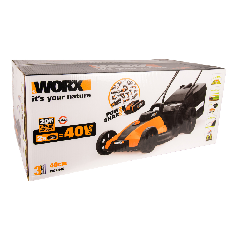 Газонокосилка Worx 20V WG744E с шириной скашивания 40 см | WG744E